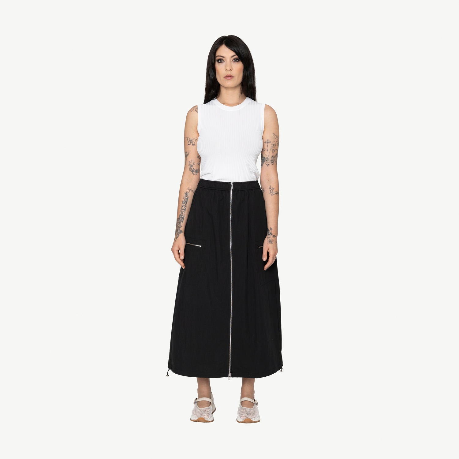 An edgy, structured skirt with clean lines and bold contrast. The Staro Skirt makes a statement, no effort needed.